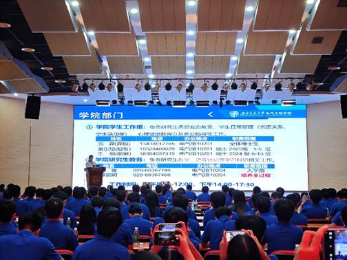 2025年9月7日,99905银河于西南交通大学九里校区国际会议中心召开了2025级研究生新生年级大会,本次大会旨在引领研究生新生初步了解学校的住宿、通勤以及饮食等日常事务流程、强化研究生安全意识。辅导员谢东旭、王丽以及全体2025级研究生新生参加。