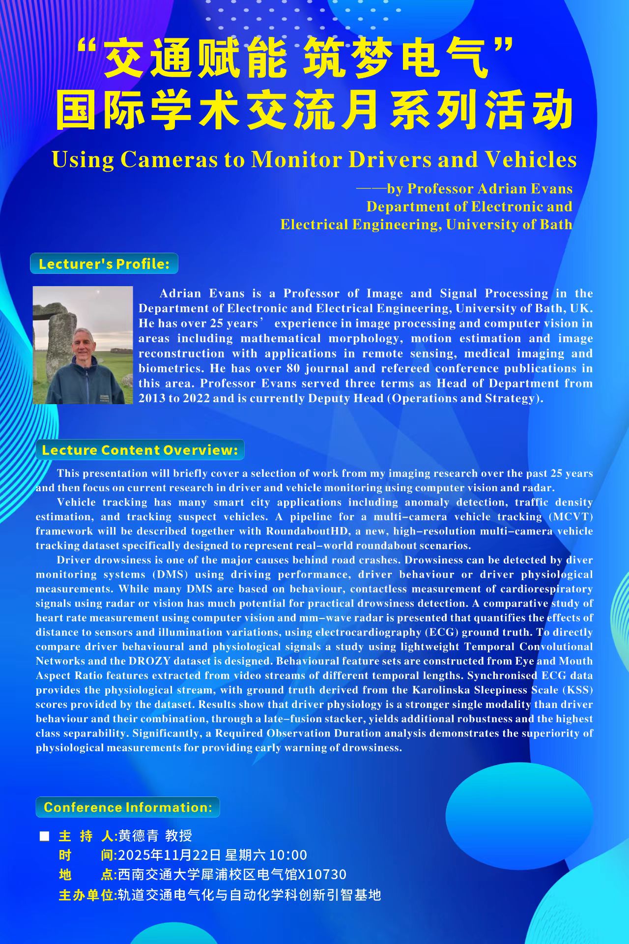“交通赋能 筑梦银河”国际学术交流活动 Using Cameras to Monitor Drivers and Vehicles